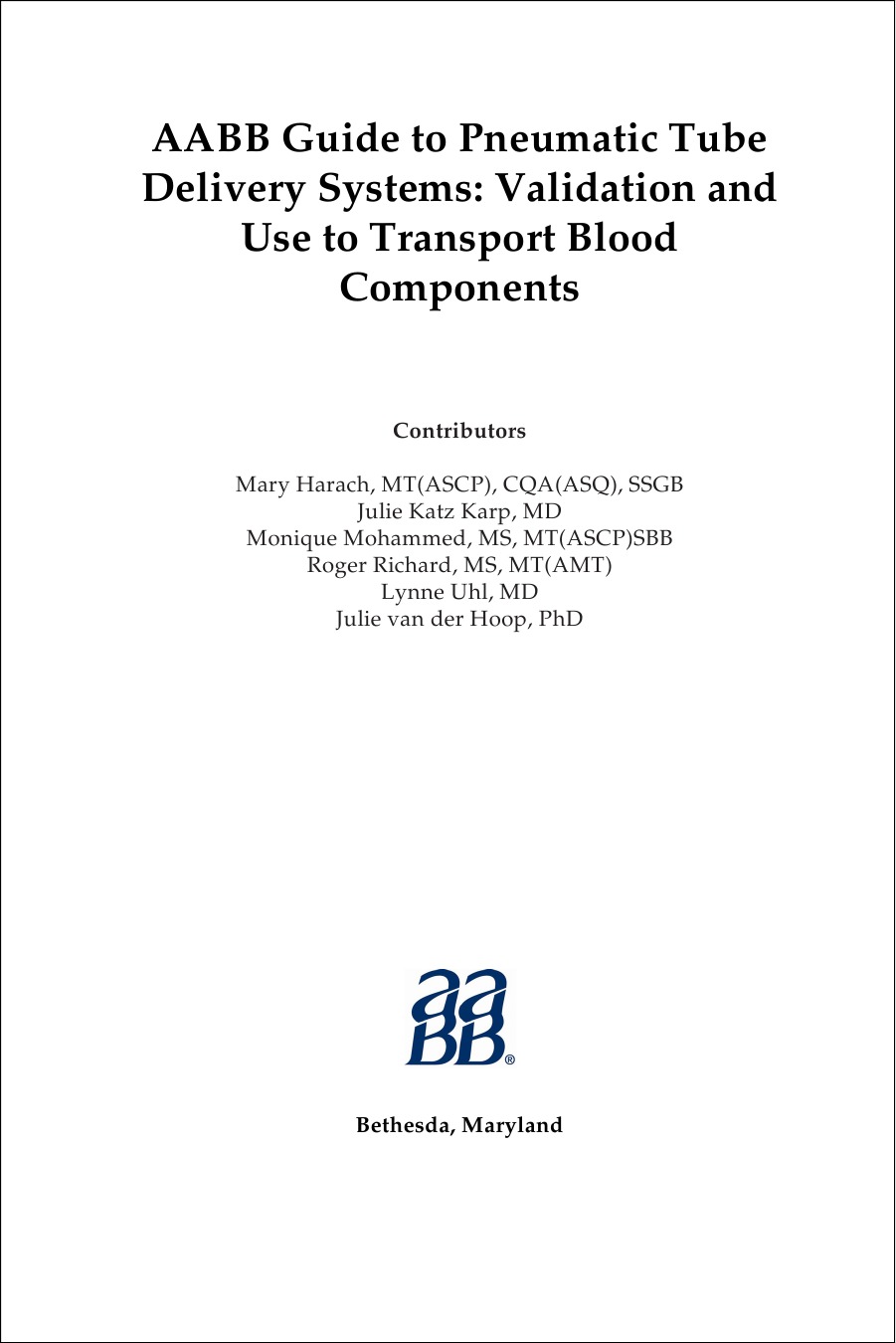 AABB Guide to Pneumatic Tube Delivery Systems: Validation and Use to Transport Blood Components